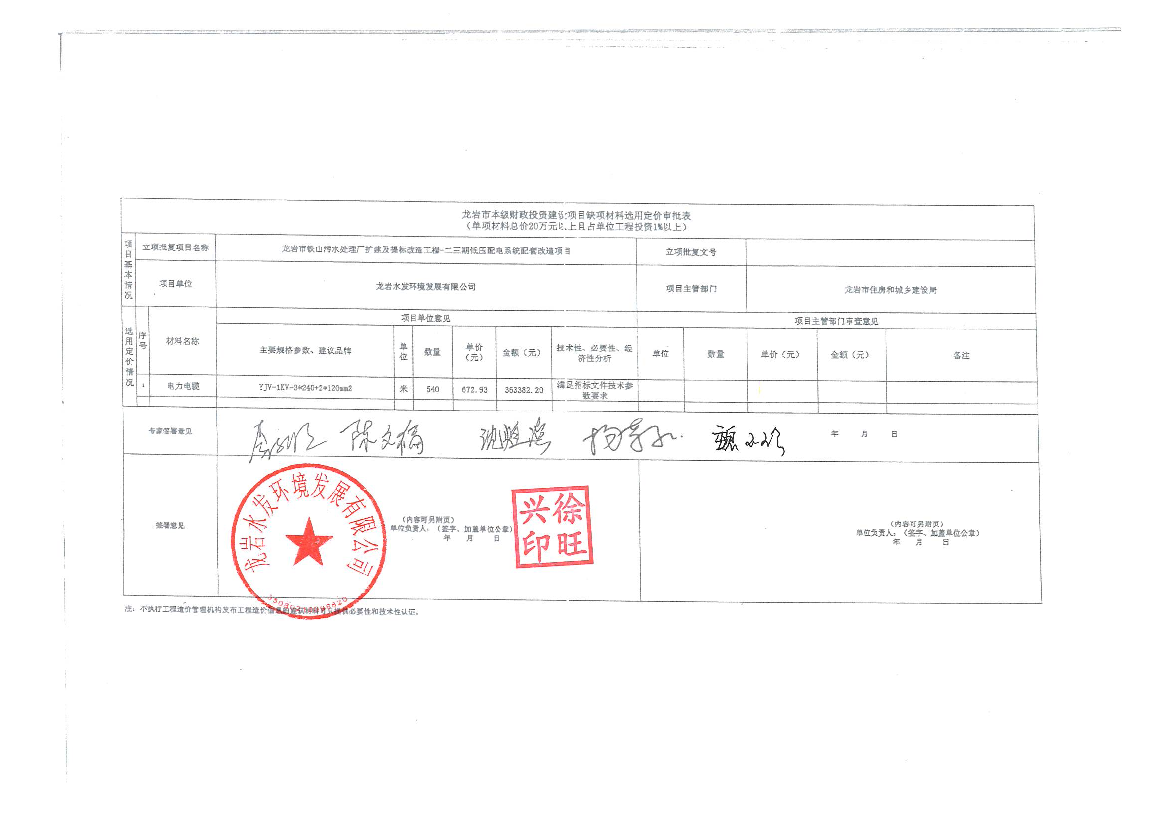 各有關(guān)單位如對上述缺項(xiàng)材料定價論證意見有異議,可于2024年1月7日前將書面文件提交至龍巖水發(fā)環(huán)境發(fā)展有限公司。(聯(lián)系人:邱建華 電話:18950839354)